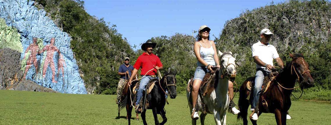 ¡Conoce el Valle de Viñales a caballo! Este paseo te llevará por senderos a través de montañas y mogotes del Valle de Viñales y te permitirá estar en contacto con la riqueza natural de la zona y familiarizarte con las costumbres de los campesinos. A partir de las 9.00hrs puedes contratar la excursión todos los días.